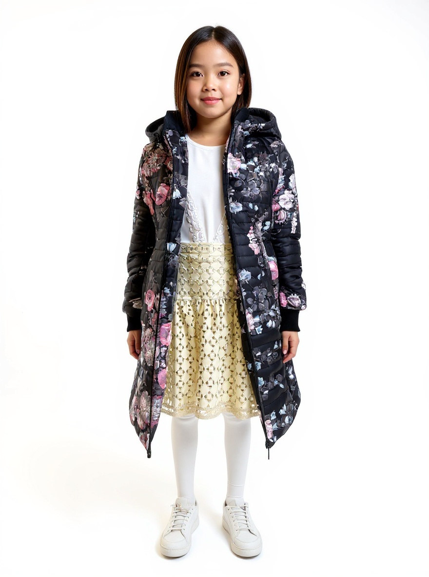 Crna podloga daje eleganciju, dok cvetni detalji unose razigranost. Jakne za devojčice sa ovakvim dezenom savršeno spaja praktičnost i stil.